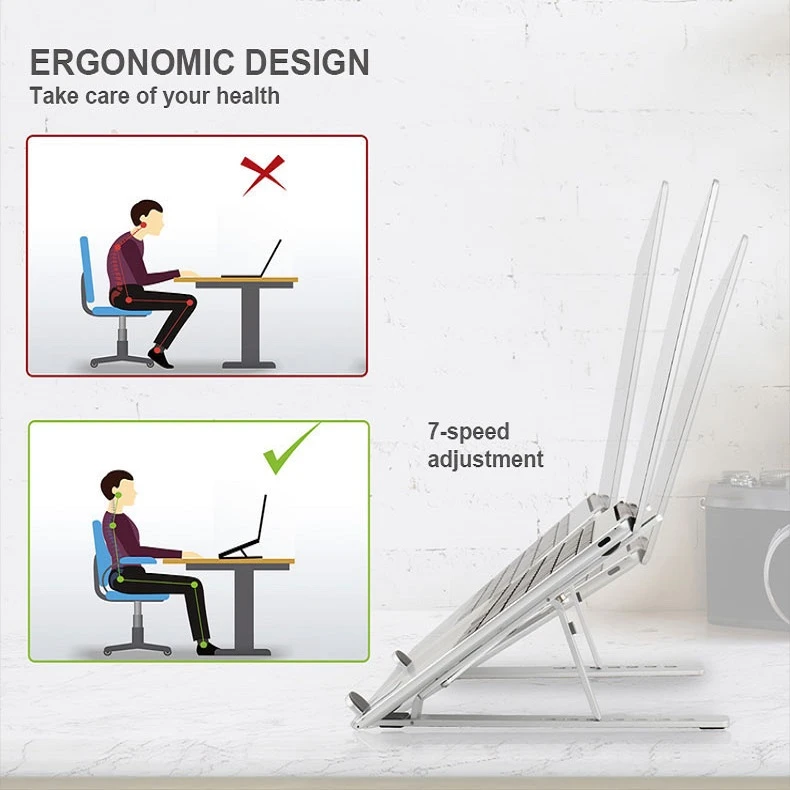 تنظیم ارتفاع لپتاپ برای راحتی بیشتر در استفاده طولانیمدت.